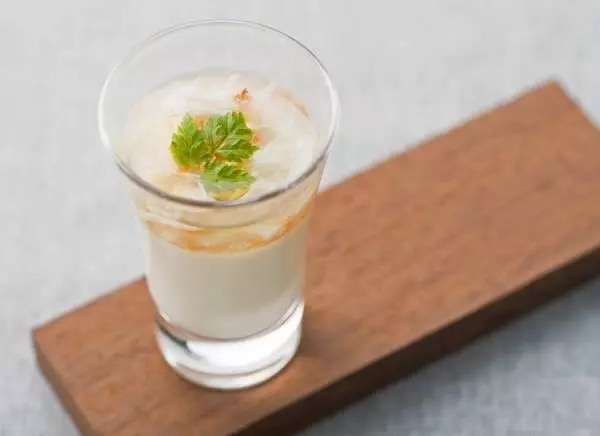 ズワイガニのソースを使ったパンナコッタ『豆乳/蟹』(アミューズの一品)