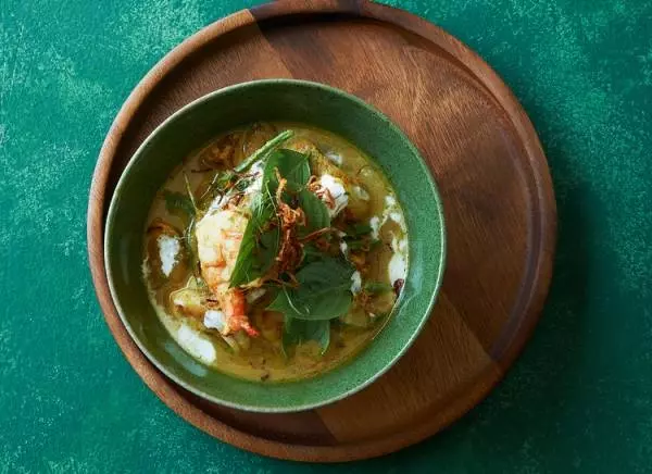 オリジナルブレンドのカレーペーストに、ココナッツミルクやチキンブイヨンを加え仕上げた『シーフードグリーンカレー』フル3,200円、ハーフ1,920円(税・サ別)