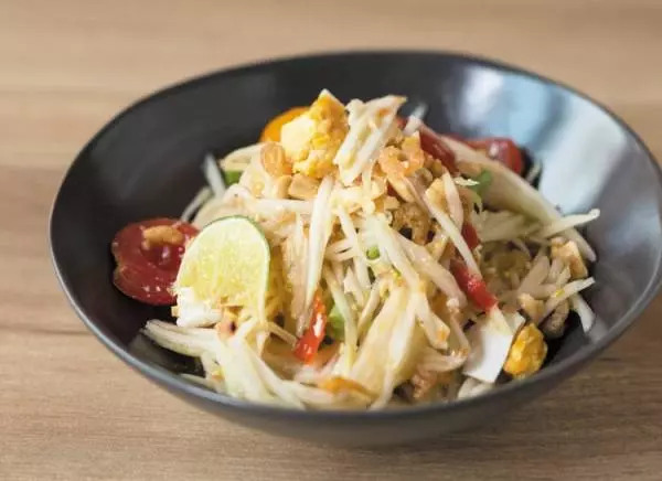 カイケム(塩漬け卵)入りのパパイヤサラダ『タムタイ カイケム』1,180円(税別)。唐辛子の辛さやカイケムの塩気に卵のまろやかさが加わった奥深い味わい