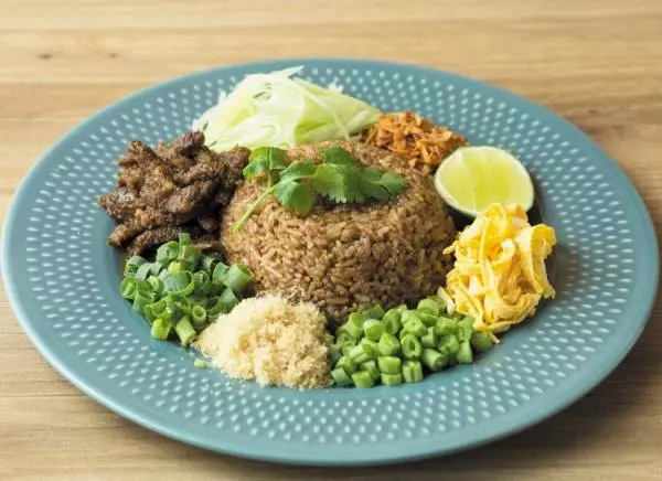 香ばしいエビペーストで仕上げたチャーハンと、彩り豊かな具材を混ぜて食べる『カオクルックガピ』1,450円(税別)