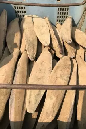 屋外には、天日干し中の本枯れ節が並んでいる。雨に濡らすのは厳禁ということで、天候にも細心の注意を払いながらじっくり完成を目指す