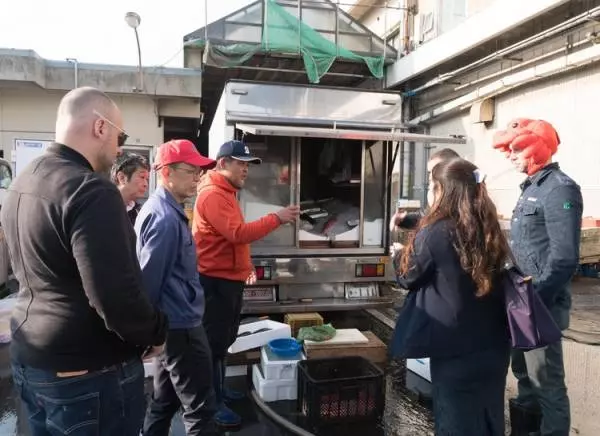 タコ名人の宮原聖一さんによるレクチャーに熱心に耳を傾けるシェフたち