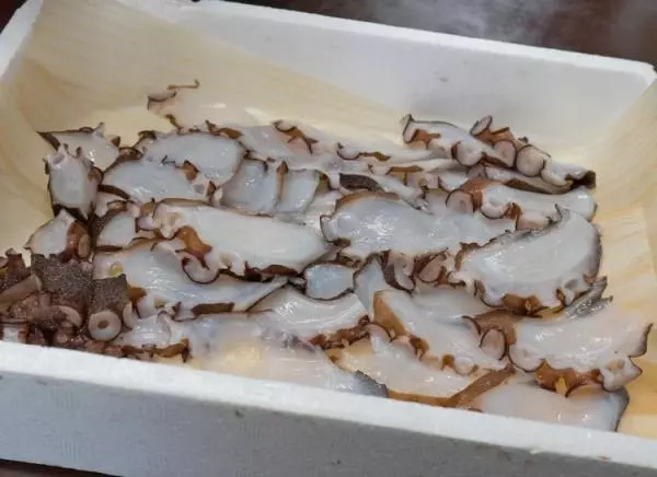 宮原さんが茹でたタコをいよいよ試食。何ともほどよい食感と風味にうっとり。「タコ本来の味が最大限に引き出されているので、塩をほんの少しつけるだけで食べてみて」と宮原さん