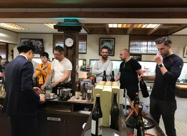 薩摩酒造花渡川蒸溜所明治蔵の見学を終え、試飲を楽しむシェフたち