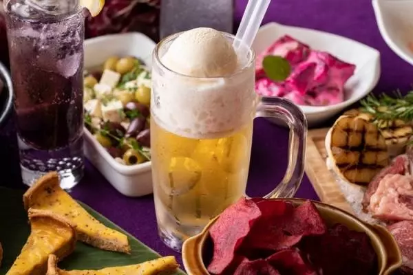 〆のデザートには、飲んでびっくりの『ビールフロート』を用意。ビールのゼリーに、ビールのシャーベット、さらにビールのアイスを組み合わせた、ビール好きにもスイーツ好きにもたまらないデザートです。
