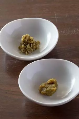 豚汁に添える自家製のゆずこしょうは、料理によって使い分ける