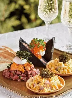 青山本店で毎年好評のシャンパンフリーフローが楽しめる「シャンパンテラス」。今年のテーマは「ラグジュアリーな一品でシャンパンフリーフロー」。シャンパンと相性ぴったりなキャビア・生雲丹・蟹・牛肉・イクラのラグジュアリーな5つの食材を使った前菜3品『キャビアとズワイ蟹のタルトレット』、『生雲丹と牛肉のタルタル仕立て』、『イクラとサーモンのホットサンド』を含んだ3つのプランを用意。