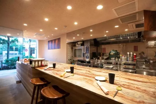 店内に足を踏み入れると、大理石のカウンターが目をひく華やかな空間が広がる