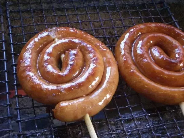 「モクモク手づくりファーム」の直営店で特に人気の高いメニューが『ぐるぐるウインナー』。