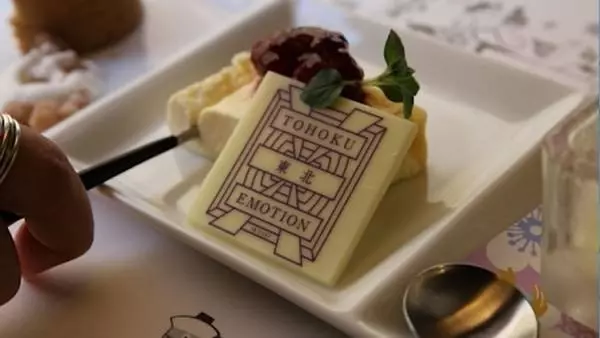 復路では乗車して席につくと、「TOHOKU EMOTION」のオリジナルロゴが入ったデザートプレートが運ばれてきます。そのあとは【ホテルメトロポリタン盛岡】のシフォンケーキやチーズケーキ、プリンなどなど、目移りしてしまう10種類程度のデザートブッフェがたのしめます。