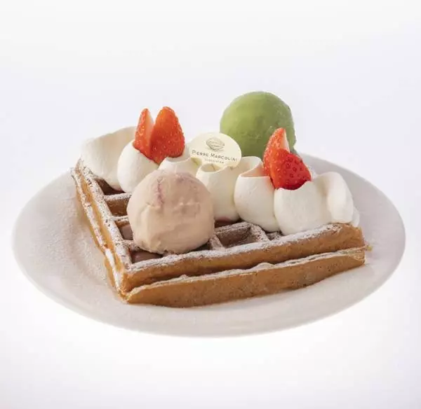 マルコリーニで定番のワッフルも今だけのストロベリーに。『マルコリーニ ブリュッセルワッフル ストロベリー』は、ふわふわのワッフルの上にストロベリーアイスとチョコレートアイスの鮮やかな組み合わせ。ストロベリークリームとソースも加わり、春らしいデザートに仕上がりました。