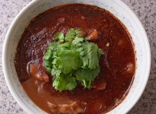 『牛肉山椒オイル掛け』1,950円。四川の代表的な料理の1つ『水煮牛肉』。伊藤さんが初めて【趙楊】で食べてその香りと辛さに感銘を受けた思い出の一皿。