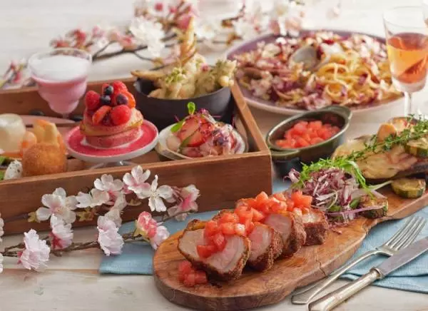 プランAに肉料理『柔らかく仕上げた豚ロース肉の香草カツレツ トマトと桜ビネガーソース』(BC共通)と、ロゼワインやビール、赤・白ワインなどのフリードリンクがついた「桜テラスプラン B」や、ヒューガルテンのロゼビールや自家製ホットワイン(赤・ 白)などグレードアップしたスペシャルフリードリンクがついた「桜テラスプラン C」もあり。