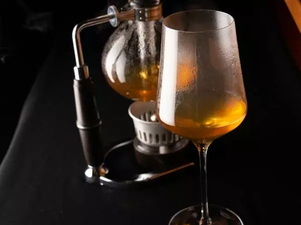 コースの開幕を彩る『スープ』は、高坂鶏のガラをベースに、12時間かけてつくる特製コンソメスープです。夏はトマト、秋はポルチーニ、冬は銀杏、春は蛤など、季節食材とのコラボレーションも楽しみのひとつ。サイフォンをつかった提供方法もドラマチックです。