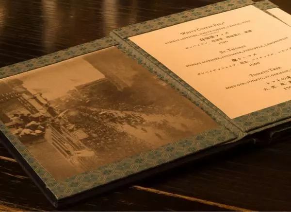 1860年、遣米使節団がNYのブロードウェイをパレードした時の写真から始まるメニュー。メニュー名もウィットに富んでいる