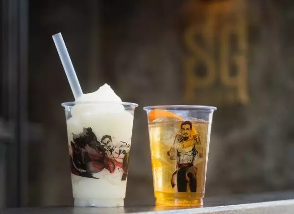 1階のカクテルはテイクアウトも可能。テイクアウトのカップには、NYにあるバーのメニューにてコミック化された後閑氏のイラストシールが貼られている