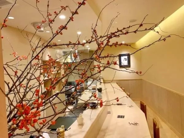 四季折々の味が楽しめる江戸前天ぷらのお店。春になると店内には山桜、ソメイヨシノ、八重桜といったさまざまな桜があしらわれます。