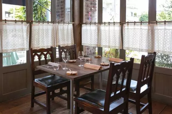 二子玉川の閑静な住宅街にある一軒家レストランは、陽の光が降り注ぐ高い天井の広々とした店内が特徴。
