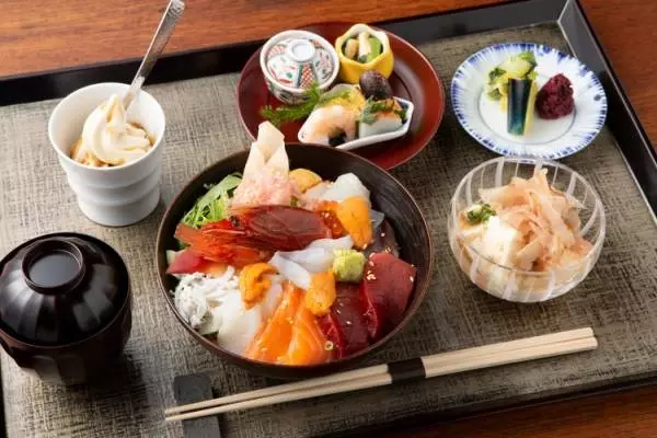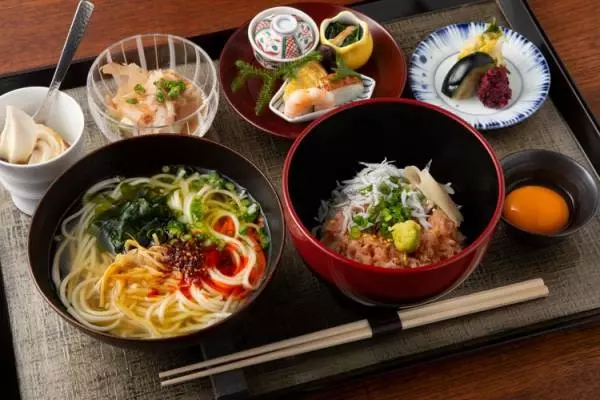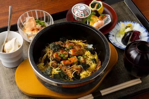 関西風特製割り下を使用した贅沢な『牛ロースたれシャブ丼』やうなぎと金糸卵、京都の老舗漬物店の柴漬けがたっぷり入った『上蒲焼きおやきごはん』など、ボリュームたっぷりの丼を中心としたラインアップとなります。窓ガラス一面に広がる緑を鑑賞しながらいただくランチは、夜とはまた違った雰囲気で時間が過ごせます。