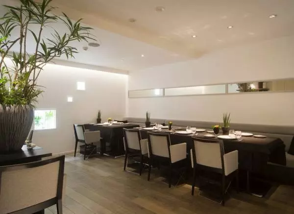 恵比寿ガーデンプレイスに近い住宅街の中に静かに佇むお店は、白を基調としたシックな雰囲気。黒のテーブルクロスと至る所に配置された緑が、くつろぎの空間を演出しています。大切な人の誕生日や記念日など、至極のひとときがゆっくりと過ごせます。