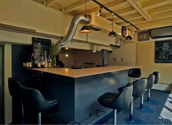 段差に沿って2名ごとに仕切られたカウンターは、まるでテーブル席のよう。