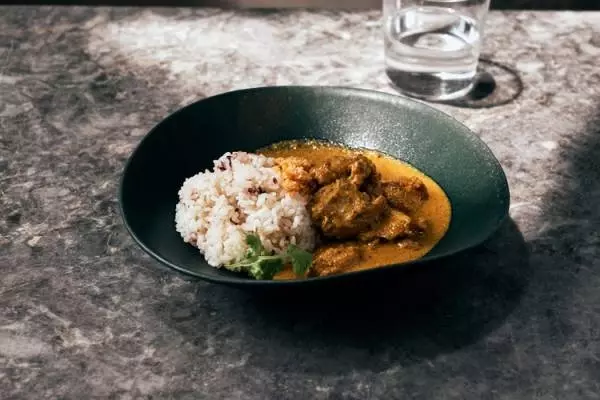 人気のカレーは鶏肉がゴロゴロ入っている。隠し味にココナッツが入ったマイルドな味わい