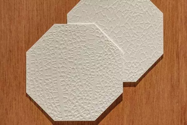 メロンの網目の凹凸をコースターで表現した「メロンを感じるコースター」は、各品種を再現。触って楽しい、学べるコースターです。