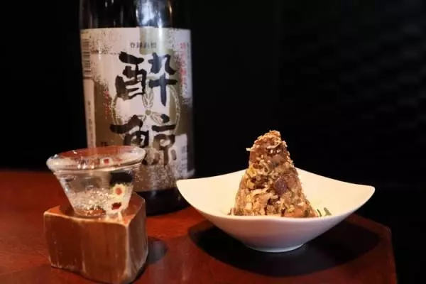 このお店では、『粒あんの燻製』と日本酒の組み合わせが最高。桜と林檎チップで燻製された粒あんを、横に添えられた“燻製塩”でいただきます。そうすると、より粒あんの甘みが際立ち、美味しさが増します。合わせるお酒は『芳弥』。すっきりとした味わいで粒あんの甘さをサラッと流してくれます。