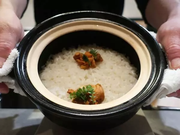 一品目から贅沢と呼ぶのに相応しい料理がでてくる『おまかせのコース』全12品 6,000円。コースはこの1つのみで、月ごとに内容を一新するスタイル。その時期ならではの和の素材が、ゲストの五感を魅了します。