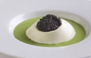 スペシャリテの『カリフラワーババロア、ブロッコリーソース キャビアを添えて』