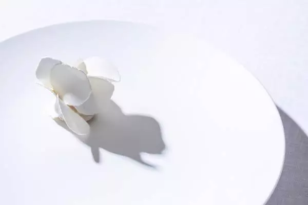 「芸術・色彩・形状」というテーマに合わせて、リオネルシェフがつくった料理。なかは酒粕を入れた、フォアグラのムース。周りは薄くスライスしたマッシュルーム