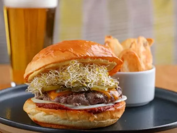 赤身肉100%のビーフパティがサンドされた、ボリューミーな『72D クラシックバーガー』
