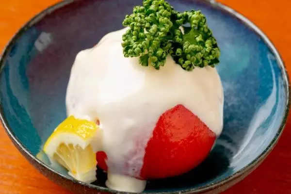 圧倒的な甘さを誇る『スイートとまとのヨーグリートソース』は、皮をむいたトマトをワインに漬けて旨みを凝縮