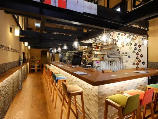 1階はカラフルなチェアがかわいいカウンター席がメインで、女性一人でも入りやすい雰囲気