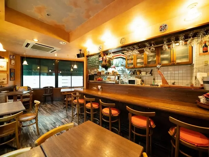 木の温もりに囲まれた家庭的な雰囲気の店内はいつも賑やかなムードに包まれています。ちょい飲みにも食事にも利用可能で、一人でもふらりと立ち寄りやすいです。店内はスペインを感じることのできるさまざまなインテリアがちりばめられ、まるで本場スペインのバルにいるような気分になれます。