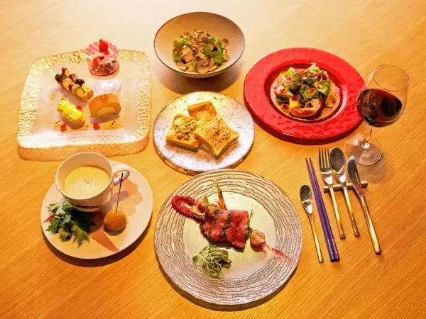 ディナーでは、スープ・サラダ&ピザ・パスタ・メインにデザート3種盛り、コーヒーまたは紅茶・ハーブティーが選べる『J_O DINNER』(5,500円)と、これにメインがもう一皿加わる『BISTRO J_O SPECIAL DINNER』(8,500円)、おひとり様の『HITO-RI-EAT』(8,000円)ももちろんあり!(すべて税込)