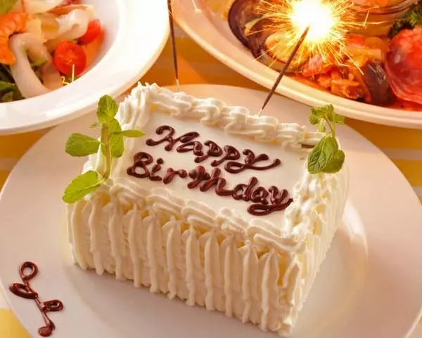 ホワイトケーキには特別なメッセージを。ランチタイムでもケーキのご用意OK