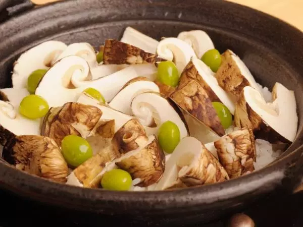 鰹出汁と薄口しょうゆに日本酒を加えて炊き上げた、季節の土鍋御飯。鰹と松茸の風味が楽しめます
