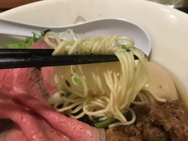 その日の牛骨によって火加減などを調整しながら作られたスープはまさに職人技。細い麺にしっかりと味が絡みます