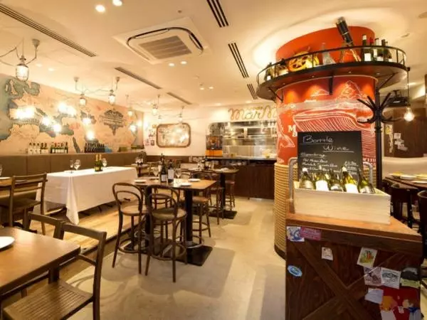 地中海料理が堪能できるバル【地中海バール AOYAMA Mar Mare 表参道】。ヨーロッパのレストランをイメージした店内は、まるで本場にいるような気分を味わうことができる上、明るくてカジュアルな雰囲気に会話も弾みます。