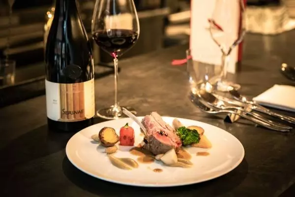 ワインはリストがありますが、シニアソムリエの中田康夫さんにぜひ相談を。この日、中田さんが『仔羊のロースト』に合わせて選んでくれたのは、南フランス産の赤ワイン『SERINAE(スリナイエ)』です。「2010年のヴィンテージワインで、角がとれてなめらか。やわらかい羊の肉に合うワインです」と中田さん。ほかにもフランス産のワインを中心に各種揃えています。