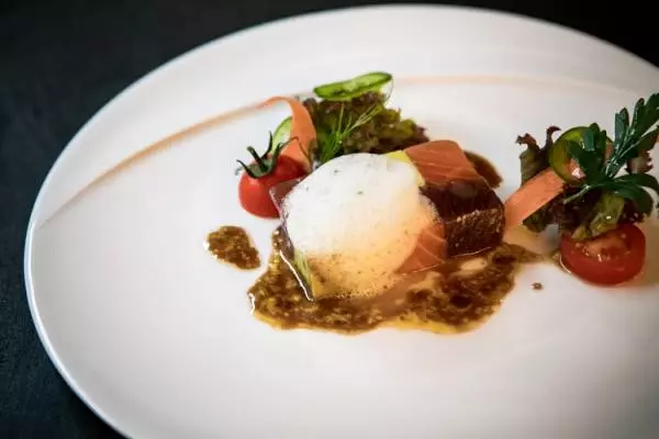 メインは魚料理と肉料理を合わせて7種類ほど。迷ったら、まずは同店のスペシャリテである『軽くスモークした骨付き仔羊のロースト こだわり野菜添え』を。やわらかさが自慢のラムは、丁寧に火入れをしているからこそ。ベストなタイミングを見極め、仕上げにスモークしています。