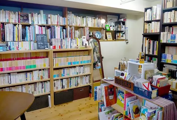 無垢の木のフローリングの上に靴を脱いでくつろぎながら本を選べる【古書みつづみ書房】。「自宅にうなっていた」という店主の三皷さん夫婦の蔵書をベースに2016年に開業。現在は美術・アート、暮らし、お茶の本、絵本など、さまざまなジャンルの本が所狭しと並んでいます。