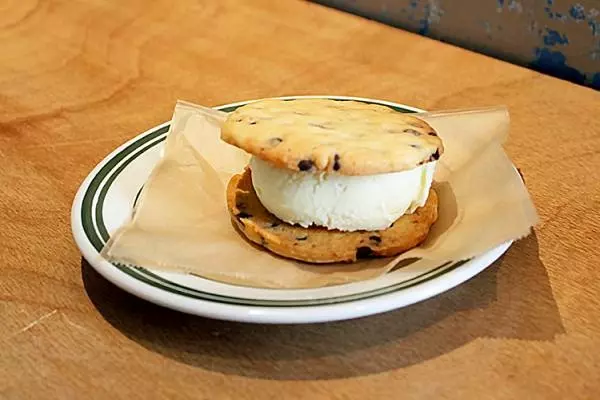 最後は、大きなサイズで焼いたチョコチップクッキーでバニラアイスをサンドしたスイーツで〆。