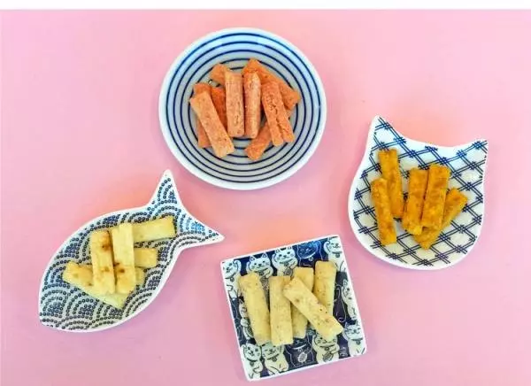 ふわっと香り立つピーナッツの風味の「さくさくプレーン」、濃厚なゴーダチーズの味わいを幾重にも重ねた「しっとりチーズ」、海老の香ばしさ漂う「カリっと海老」、新たに仲間に加わった「欧風カレー」