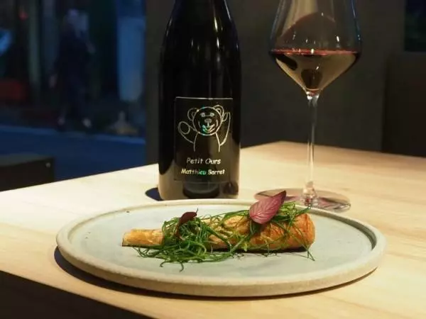 黒ビールのソースが絶品のマコモダケにはフランスのビオワインを