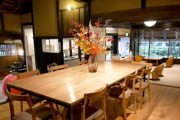 座敷の一部がフローリングに改装されテーブル席に