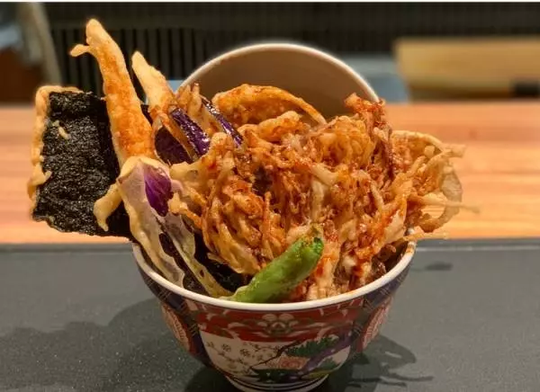 外国人客から好評の『大入り米粉海老天丼』1,700円(税抜)。ランチ、ディナーともに提供