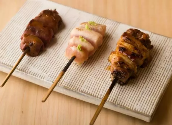 日本一予約が取れないと言われ、世界で初めて焼鳥店としてミシュランの星を獲得した【鳥しき】出身店主の店。焼鳥は一串ずつ提供されるおまかせスタイルで、ストップと声をかけるまで、ささみに砂肝、つくね、ぼんじり、ちょうちん、手羽先など様々な部位が登場します。