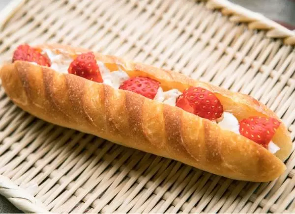 いちごなしのスタンダードな『ミルクフランス』もありますが、『いちごミルククリームサンド』は、自社農園の近隣の農家から分けてもらった「とちおとめ」を使用し、香り豊かな味わいです。練乳を入れた自家製クリームは、なめらかな舌触りとほんのりとした甘さが楽しめます。